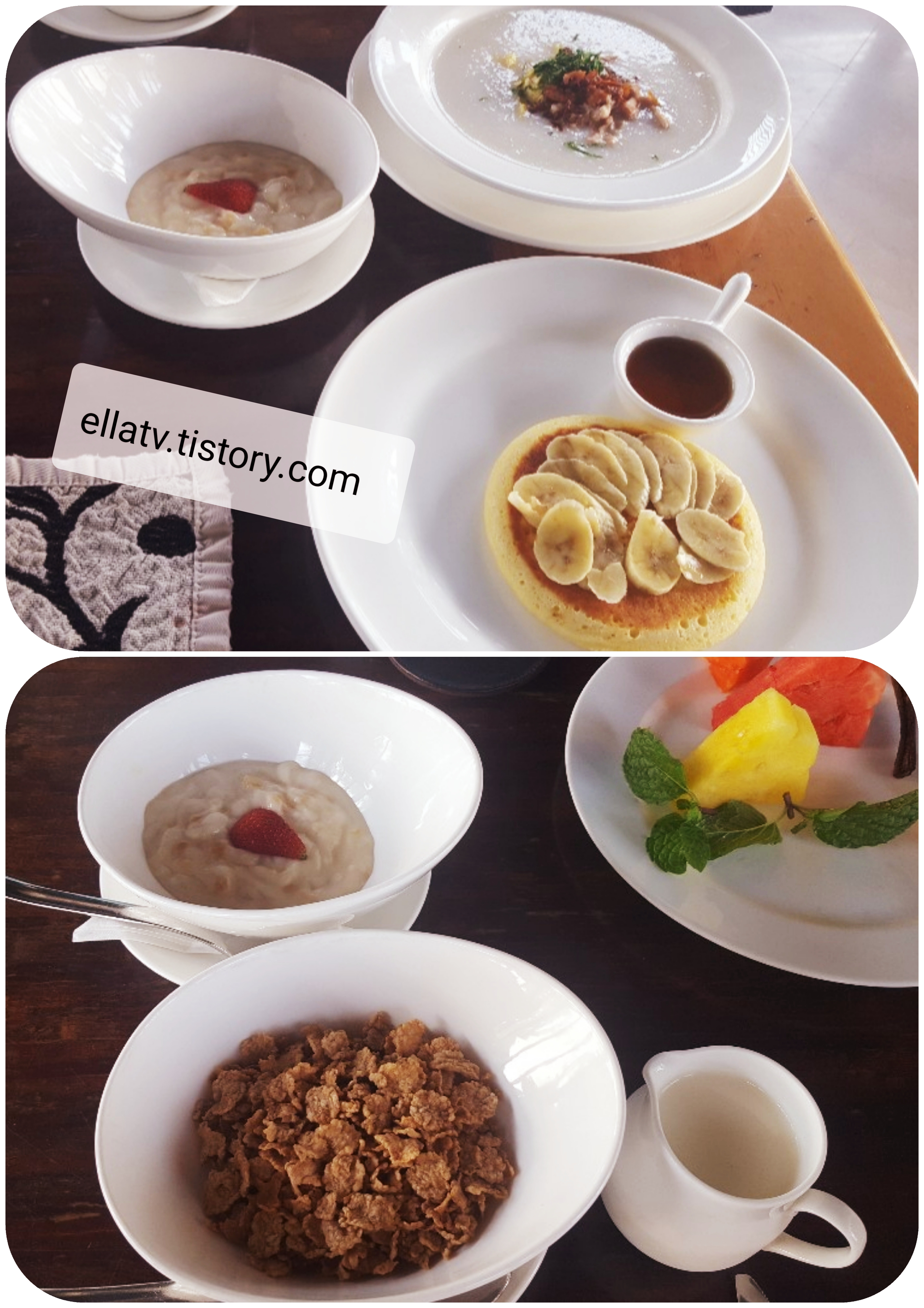 갓 구운 크루아상에 예쁜 모양의 맛있는 버터와 방금 갈아준 망고주스~~ 아침마다 바나나 주스도 마시고 계속 신선한 과일주스를 마셔서 너무 좋았어요. 근데 사실 패션푸르츠 맛이 나는 엄청 상큼했던 웰컴 드링크 그게 제일 맛있었거든요? 그래서 혹시 그거 다시 만들어줄 수 있냐고 물어봤더니 안된다고 하더라고요. 그럼 만들어서 팔기라도 하지.. 그럼 매일 사 마셨을 텐데... 너무 맛있는데 또 못 마셔서 너무 아쉬웠어요..