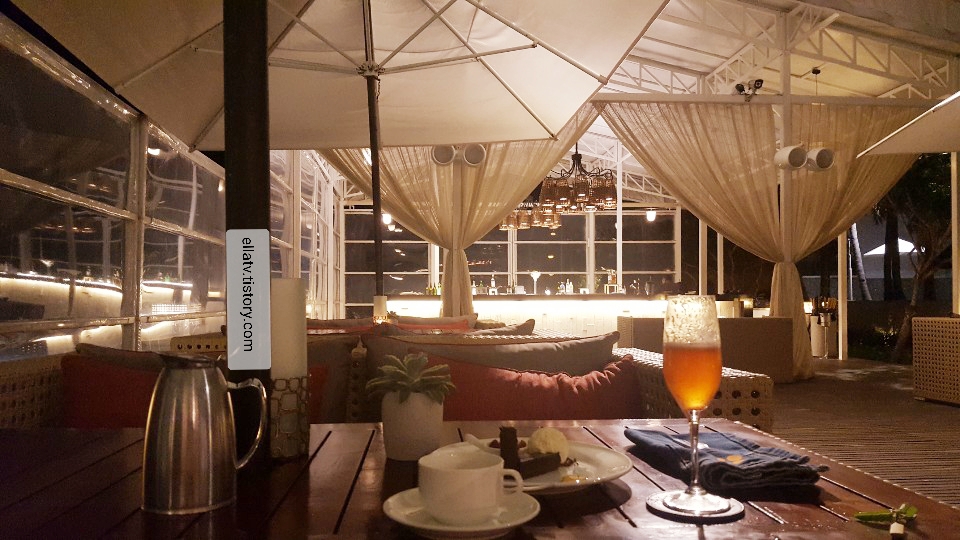 밤에는 칵테일과 와인을 마시러 바에 갔어요. 밖에도 멋있게 꾸며놨지만 추워서 저는 따뜻한 핫초코랑 초콜릿 케이크를 먹었는데 너무 맛있었어요. 투숙객은 돈을 지불하지 않고 룸넘버만 적고 가면 돼요. 그러면 나중에 청구돼요.