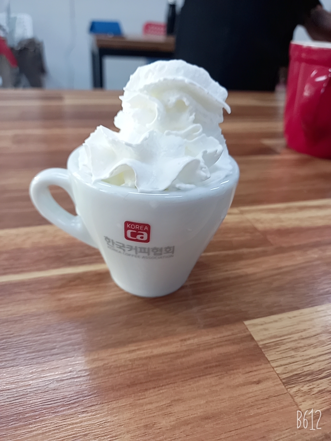 에스프레소 솔로 위에 휘핑크림을 얹음