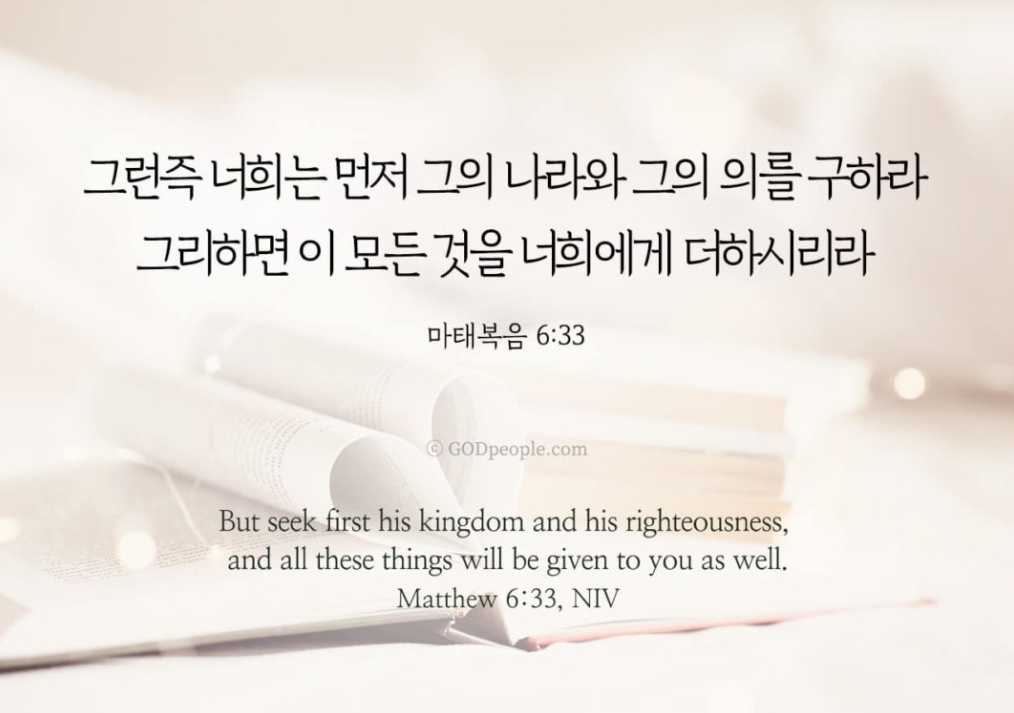 그런즉 너희는 먼저 그의 나라와 그의 의를 구하라 그리하면 이 모든 것을 너희에게 더하시리라